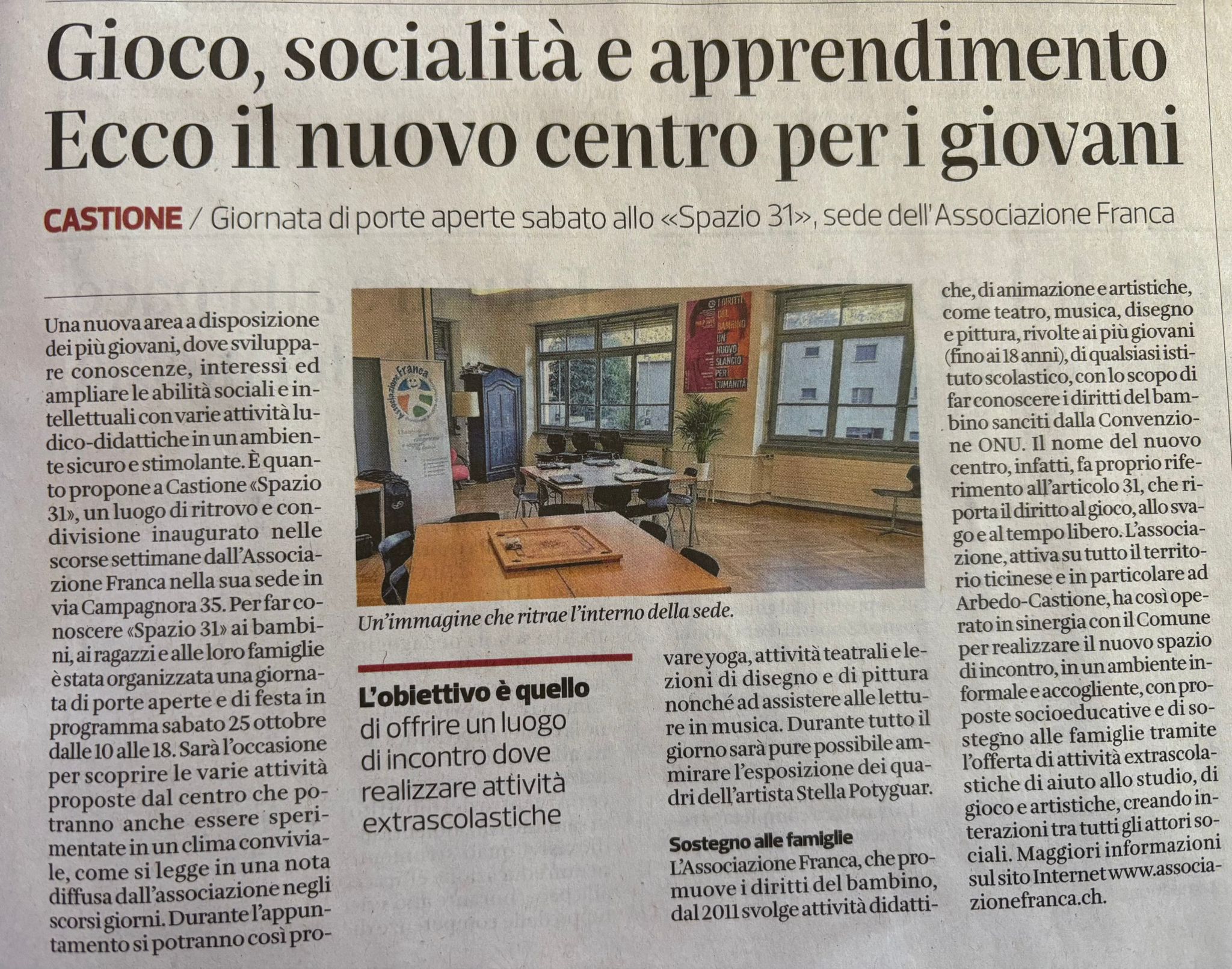 Gioco, socialità e apprendimento - Ecco il nuovo centro per i giovani - "Spazio 31"