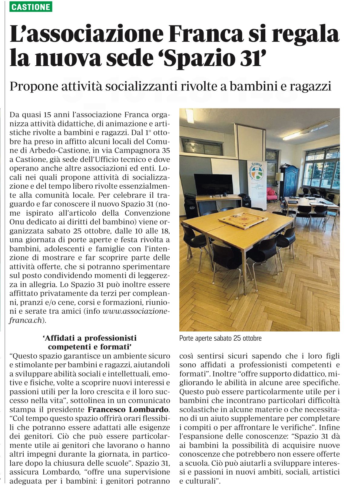 La Regione - Giocare è una cosa seria - 22 giugno 2022